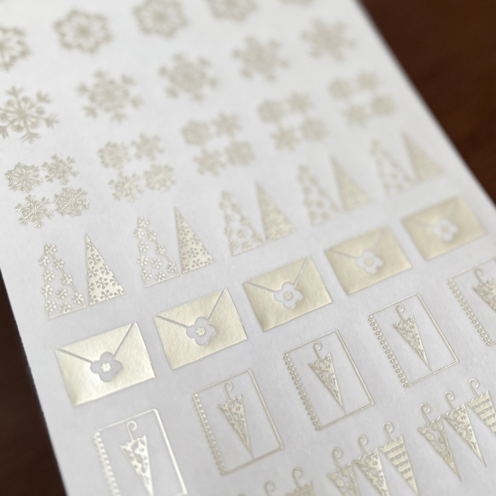 箔押し加工トレーシングシール リース雪ツリー パールゴールド