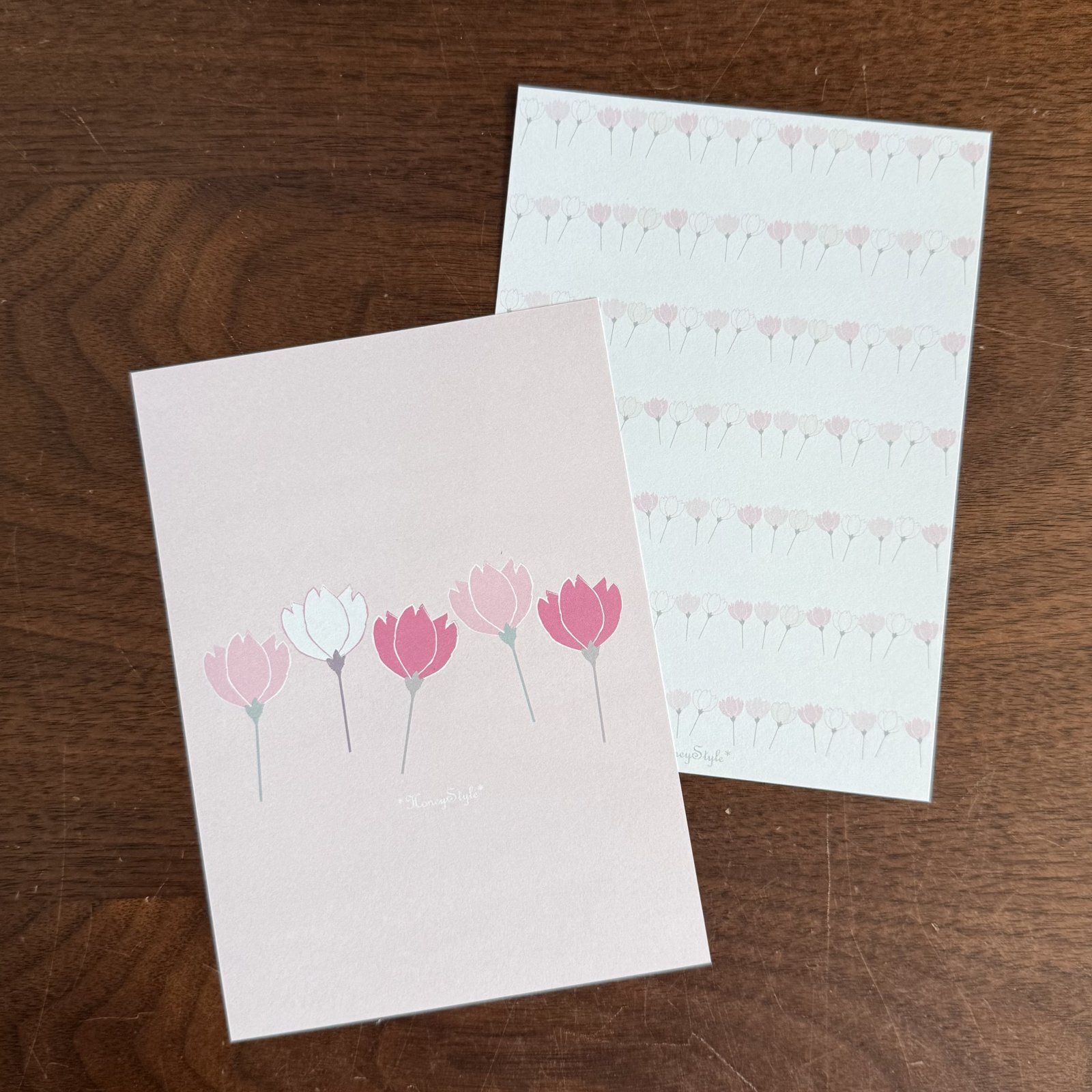 memo便せん(一筆せん): つぼみピンク柄 5枚入 【両面印刷】