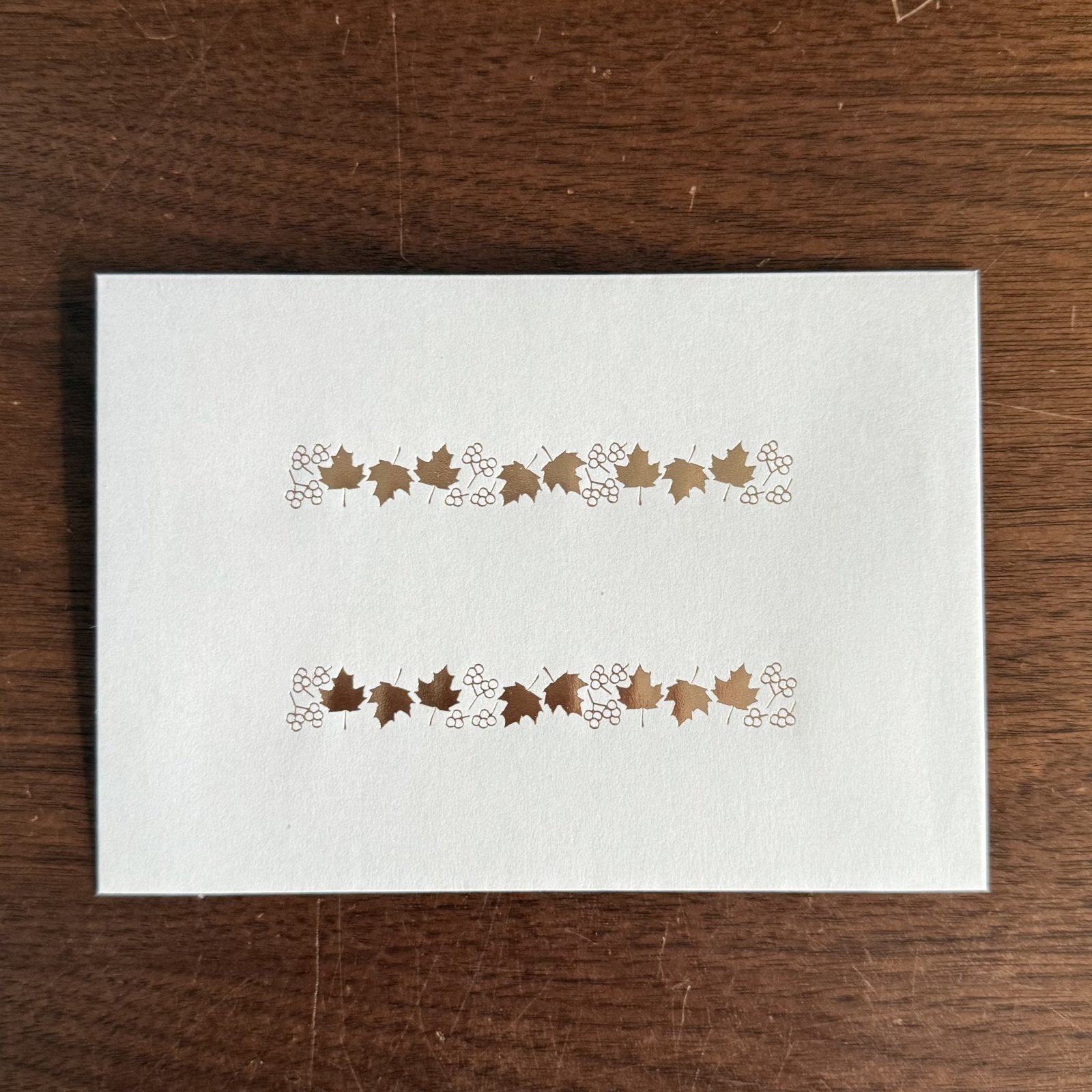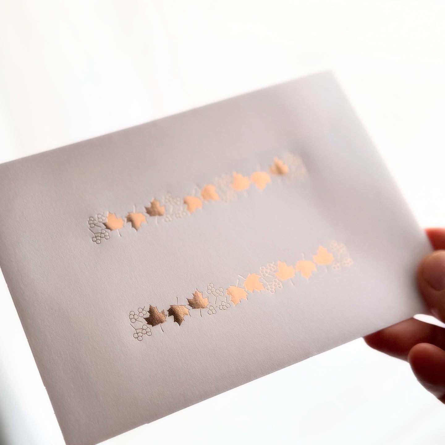 箔押し封筒:ホワイトブラウン:ピンクゴールド箔xメープルリーフ&実柄 1枚