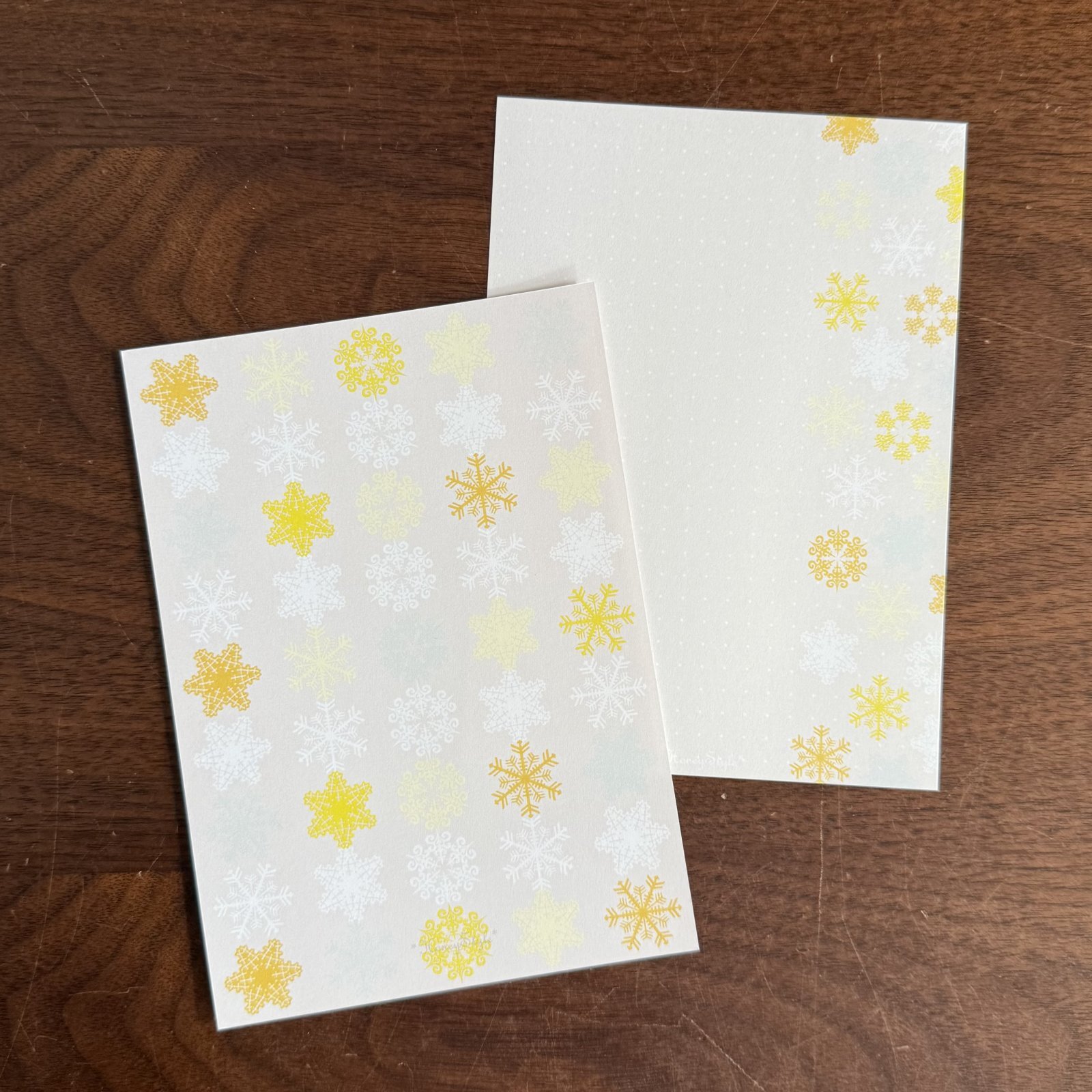 memo便せん(一筆せん): 雪模様イエロー柄 5枚入 【両面印刷:裏面は柄&ドット罫入】